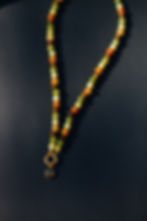Perlenkette aus verschiedenen Natursteinperlen, Tiegerauge, Jaspis und Seraphinit. Mit goldenem Wildblumen Charm.